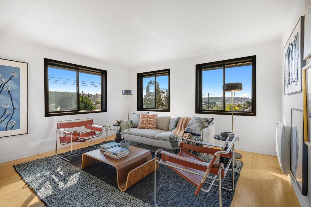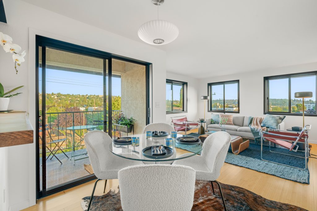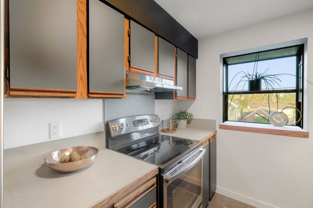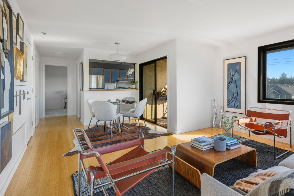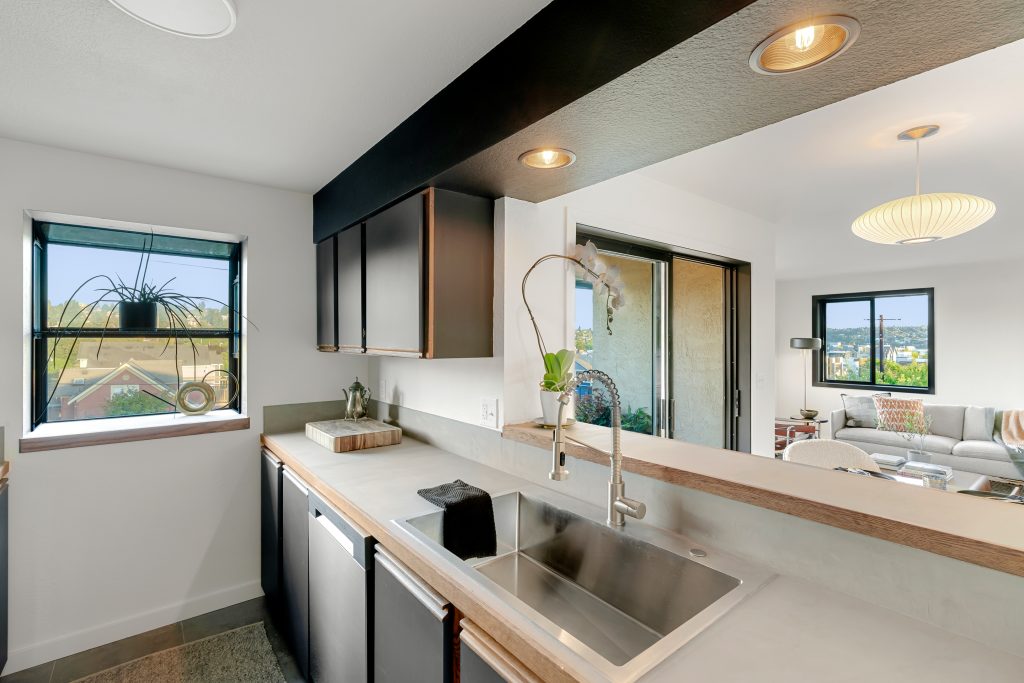 Welcome to Scandia! This remodeled, top-floor, corner condo is a study in understated sophistication. Wrapped in sunlight, thoughtful details honor the original era with modern comforts encouraging you to linger. From the covered balcony, take in expansive southwestern views of Gemenskap Park, glimpses of the city, and your daily dose of people watching. Walnut stained cabinets, concrete countertops, fresh paint, new carpet and an updated bathroom name a few of the recent improvements. Secured garage parking, in-unit washer/dryer, custom closet storage and a 93 walk/90 bike score—this one delivers in all the right ways. No rental cap, inspection + resale certificate available.