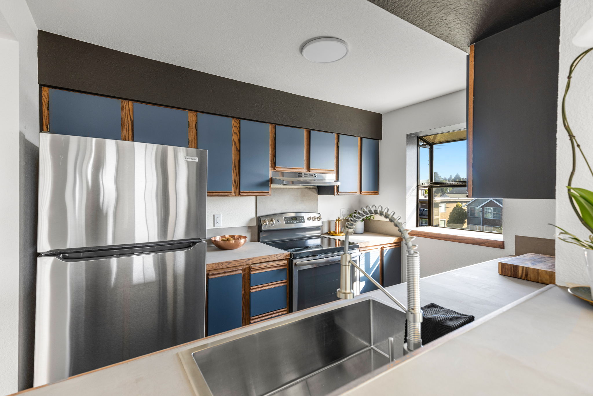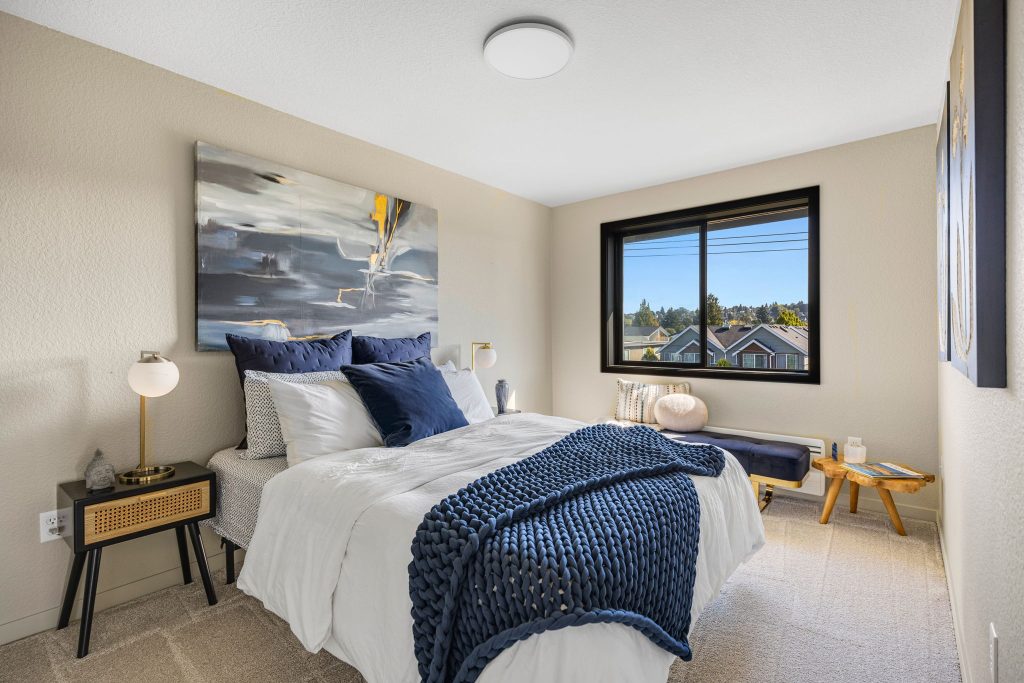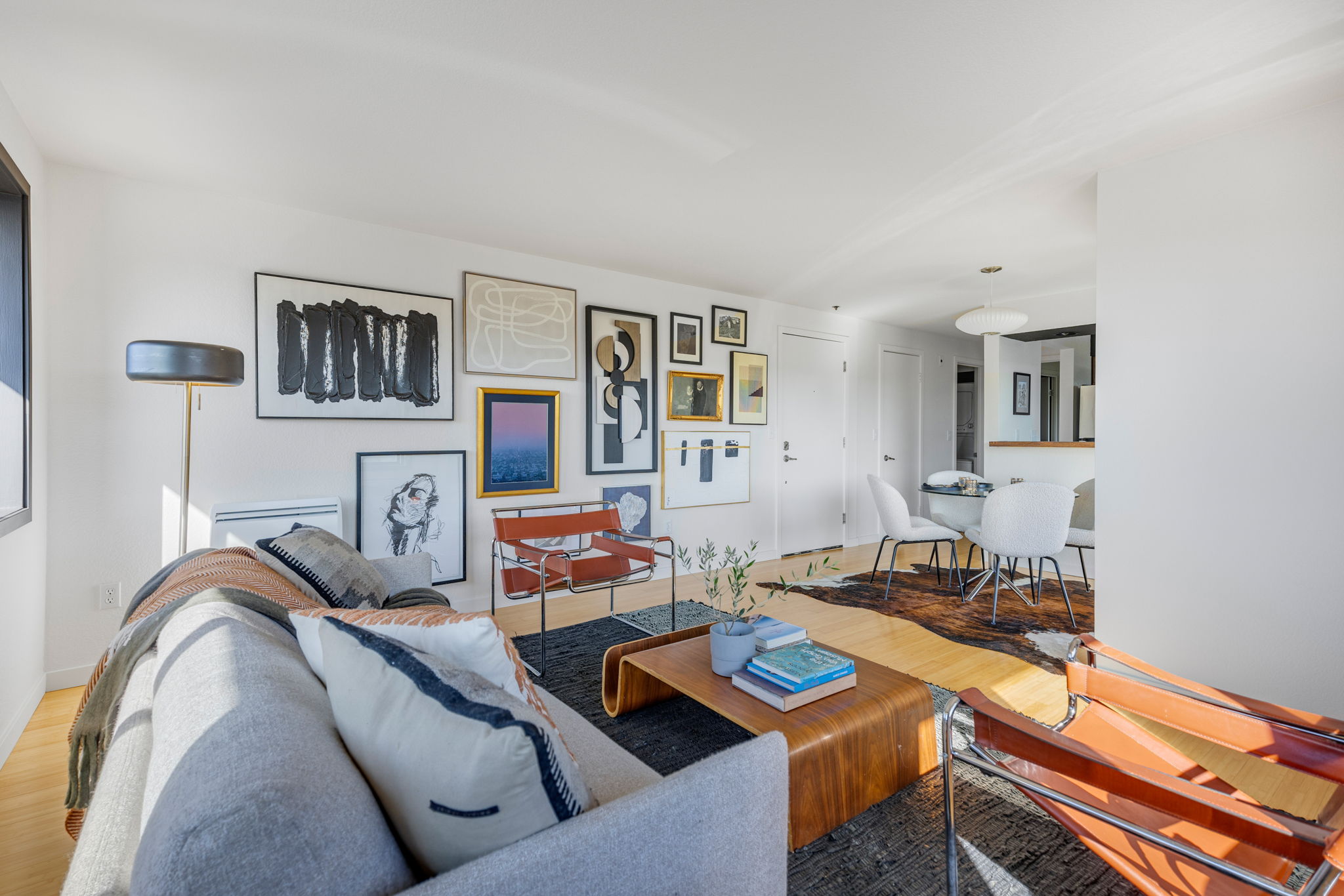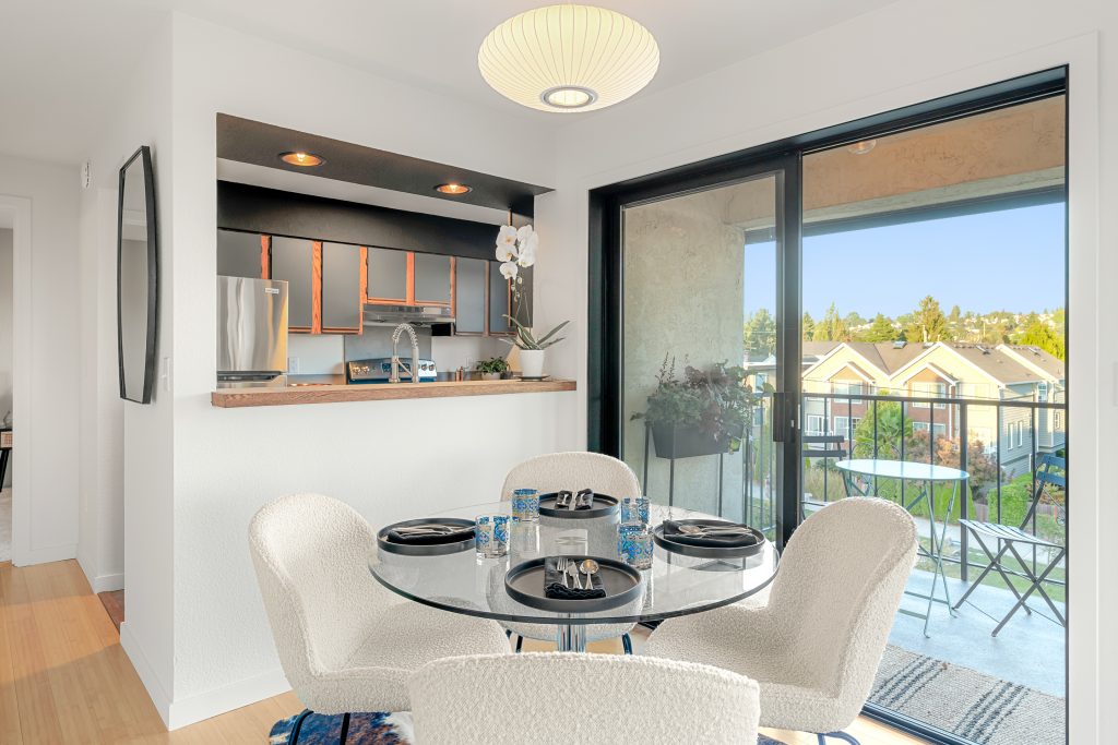 Welcome to Scandia! This remodeled, top-floor, corner condo is a study in understated sophistication. Wrapped in sunlight, thoughtful details honor the original era with modern comforts encouraging you to linger. From the covered balcony, take in expansive southwestern views of Gemenskap Park, glimpses of the city, and your daily dose of people watching. Walnut stained cabinets, concrete countertops, fresh paint, new carpet and an updated bathroom name a few of the recent improvements. Secured garage parking, in-unit washer/dryer, custom closet storage and a 93 walk/90 bike score—this one delivers in all the right ways. No rental cap, inspection + resale certificate available.