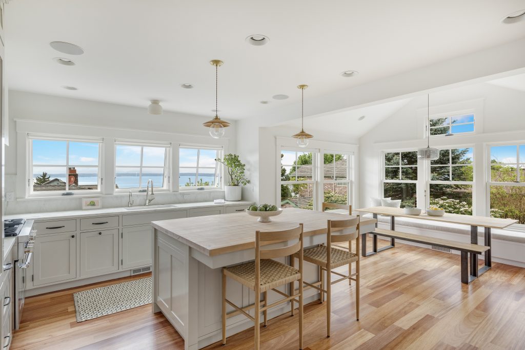 | Understated luxury. With over $.5M of intentional improvements, this North Beach stunner doesn’t compete for attention, it humbly commands it. Custom stone and tile work, designer lighting, Waterworks fixtures, luxury appliances and thoughtfully placed fireplaces, no surface is untouched and every detail elevates. Moving through the space feels intimate yet open, inviting yet sophisticated, the embodiment of curated comfort. Large west facing windows and multiple Ipe decks thoughtfully blend the outdoor and indoor experience overlooking lush surrounding gardens and beautiful views of the Puget Sound to remind you, every moment, why you love living here. This is the home you’ll remember and you deserve to experience it in person. |